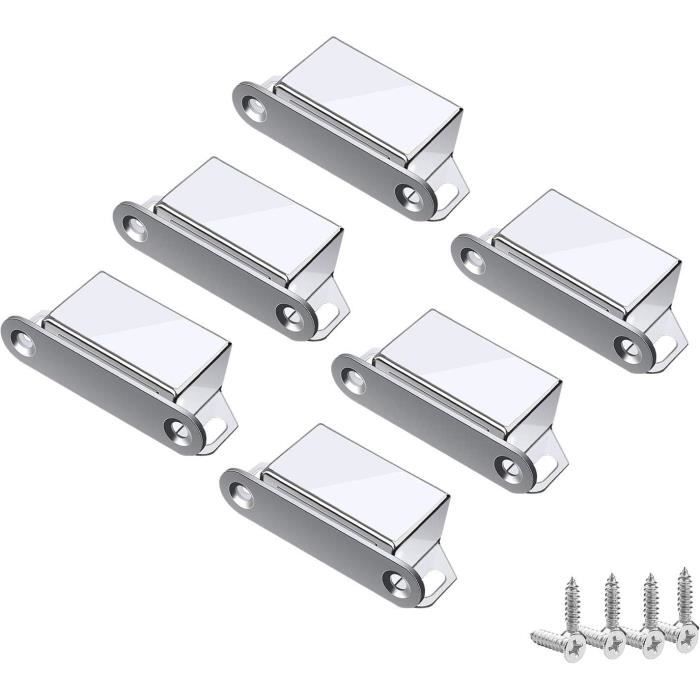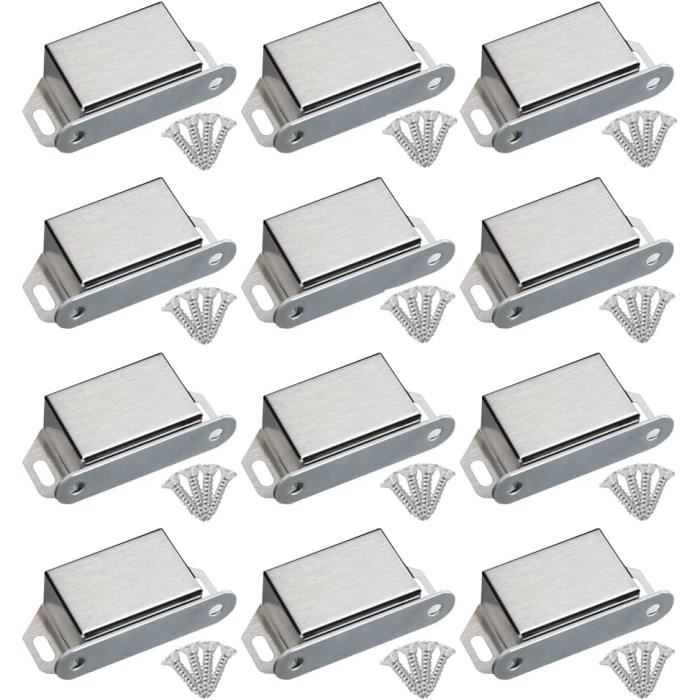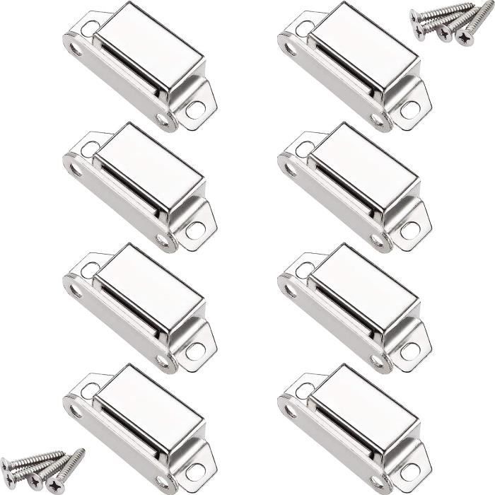 Fini les portes de placard qui ne ferment pas bien ! Ces aimants de porte ultra puissants (27 kg de force !) garantissent une fermeture hermétique. En acier inoxydable 304, ils ne rouillent pas et durent dans le temps - bien plus solides que le plastique. L'installation est simple : vis incluses, pas besoin de bricolage compliqué. Parfaits pour les grandes armoires, les placards de cuisine, salle de bain... et en plus, ils empêchent les enfants et animaux d'ouvrir les portes ! Design épuré argenté qui s'intègre partout. Lot de 4 avec garantie. La solution idéale pour enfin avoir des portes qui ferment comme il faut !